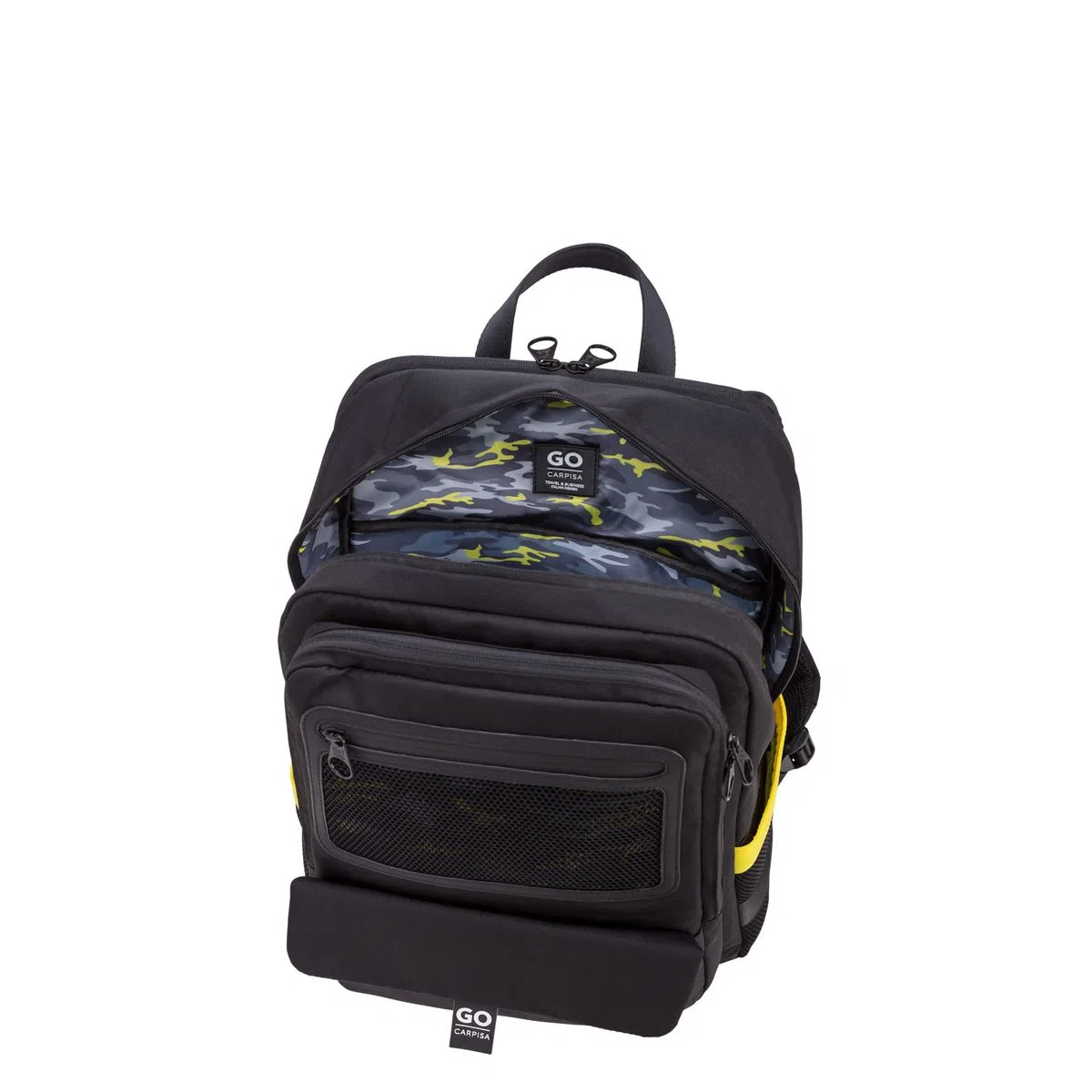 The men's backpack from the NELSON by Carpisa line is a large sports model ideal for adventurous travels in nature, to discover new cities and cultures but also for business trips. Internal camouflage print, adjustable straps, multipockets with zip to have every object in its place and find it easily. The backrest is made even more ergonomic thanks to the honeycomb fabric. The band on the back allows you to attach the backpack to the handle of each travel trolley. Comfortable handle for carrying by hand. Combinable with other accessories of the same line. PC + Tablet compartment capacity: max 15 '' Delivery within 25 days.
